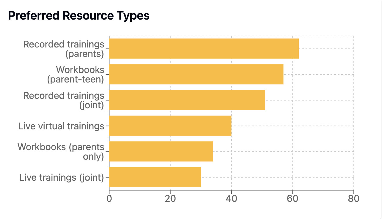 Collaboration: Most parents prefer resources they can engage with alongside their teens, suggesting a desire for tools that facilitate conversation rather than one-way instruction.