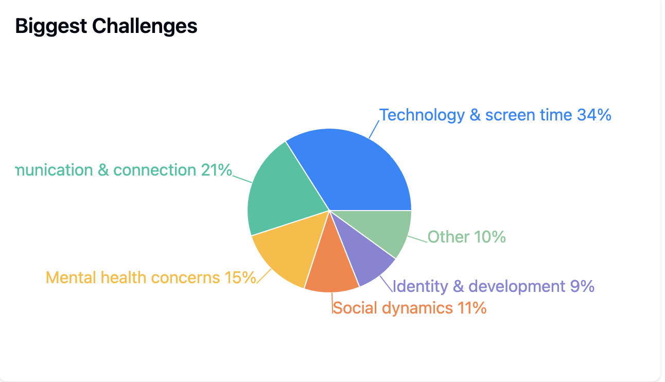 In March 2025, I reached out to parents of teens and pre-teens to better understand their concerns, challenges, and resource needs. With 50 parents/caregivers responding, representing children and adolescents aged 10-18, the survey explored parents' concerns, challenges, and preferred resource format.